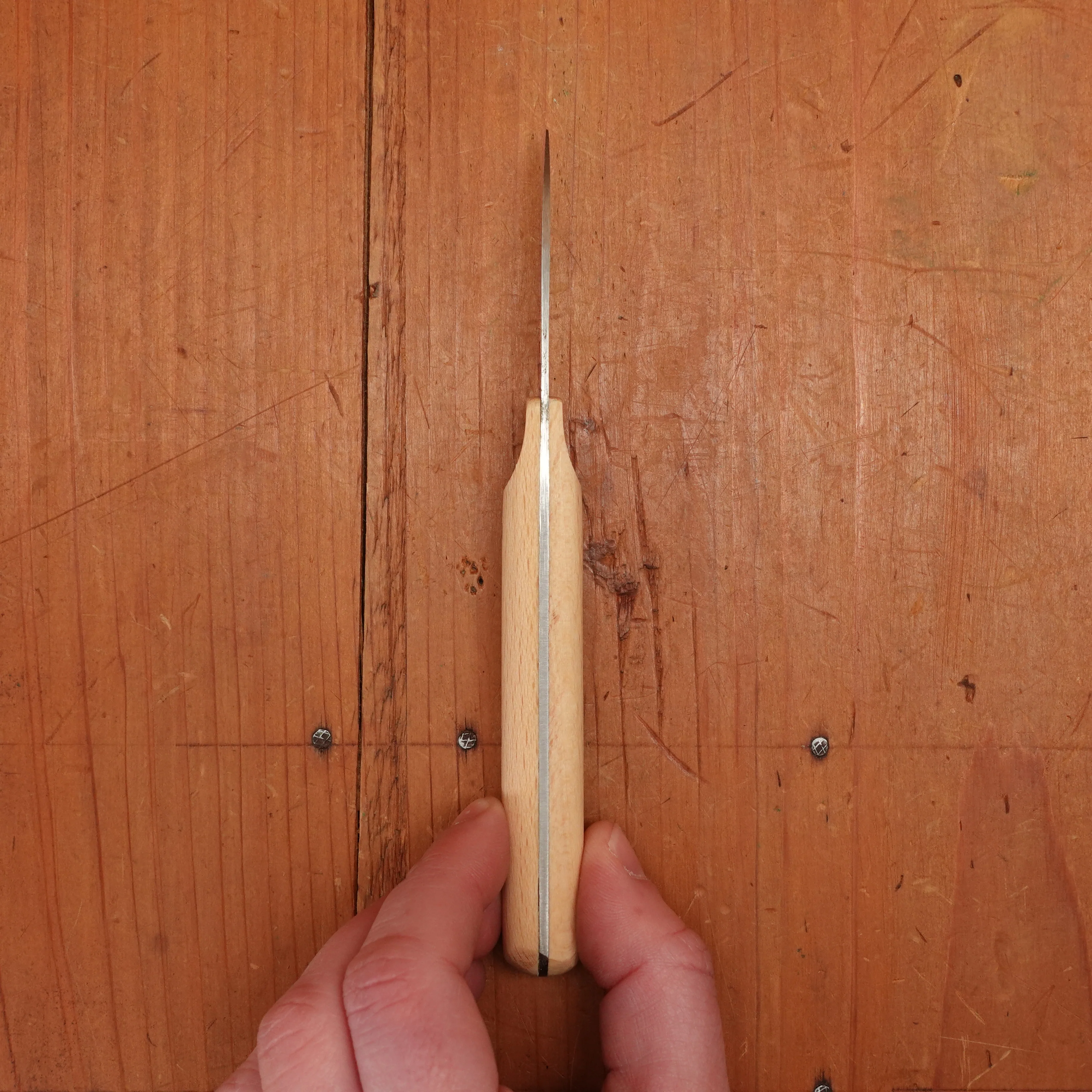 Sabot 4cm nut knife. Carbon steel blade with beech wood handle. Hand wash and dry.