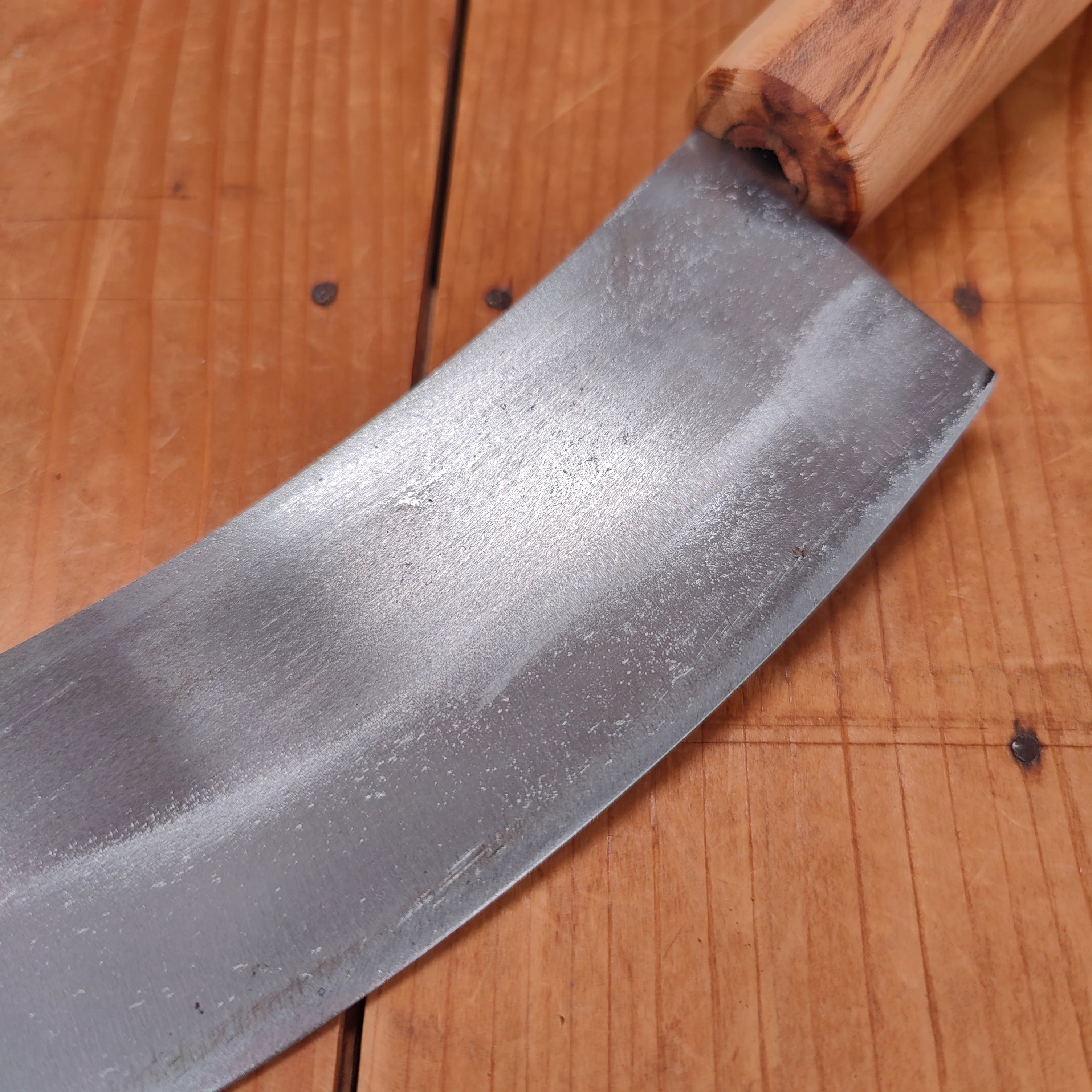 Made for use with a rocking motion, these large blades make quick work of mincing meat, herbs and vegetables together. Think of it as a giant single handled mezzaluna or hachoir.